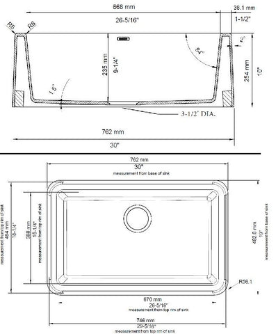 - Profundidad de tina: 9 1/2'' (24,13 cm)