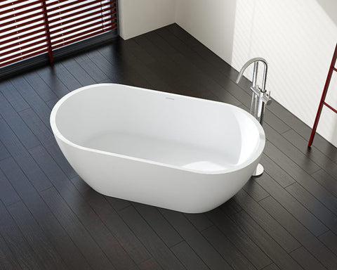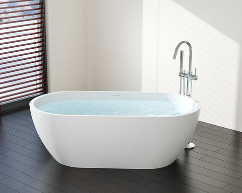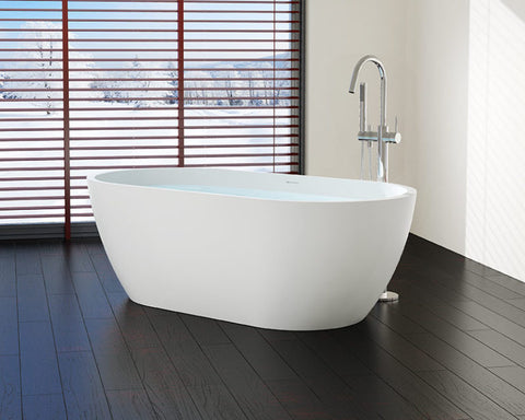 Hecho de resina de piedra duradera y aislante, puede esperar baños más largos y calientes en los años venideros. La resina de piedra también es fácil de mantener, no porosa y resistente al daño. Las bañeras de Badeloft están fabricadas con materiales no tóxicos y pulidas a mano con el acabado que usted elija. Este modelo está disponible en acabado blanco mate o brillo y se puede instalar con grifería de suelo o de pared.
