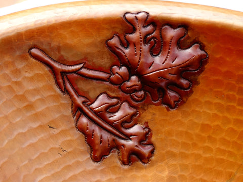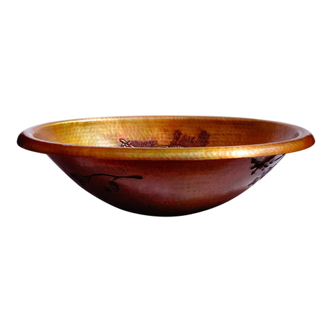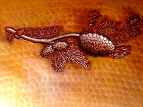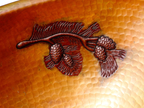 RSCOS-BC- Lavabo ovalado de cobre, martillado, con adorno de piñas de pino.
